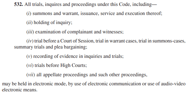 S.532, BNSS, a new general provision has added for conducting Trial and Proceedings in electronic mode: