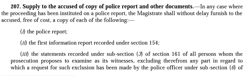 Earlier S.207, CrPC read as follows: