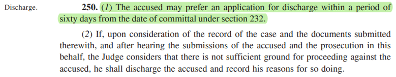 1.12. Now, a Discharge Application has to be filed within 60 days of committal of the matter: