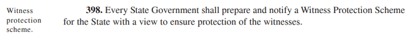 A real good step would have been to lay-down a chapter within the Criminal Procedure Code spelling out mechanics of witness protection and fixing responsibility.