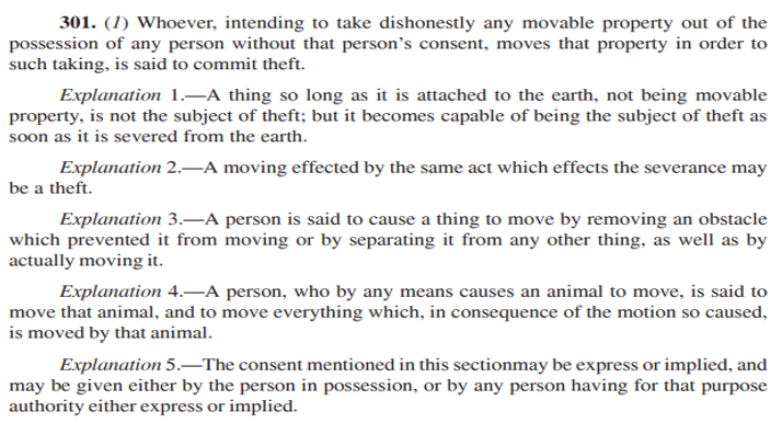 But this (ostensibly) progressive amendment, it appears, has not been followed-through with a corresponding amendment, for instance, in the definition of the offence of theft, where, for instance, the aspect of ‘moving’ of property still remains the Actus Reus (Alien for : the act/consequence needed and made culpable by law).