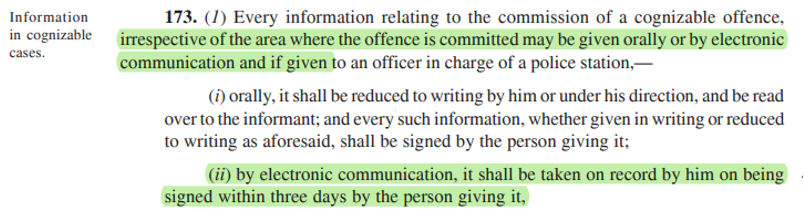 The proposed relevant provision in this regard i.e S.173(3), BNSS now reads: