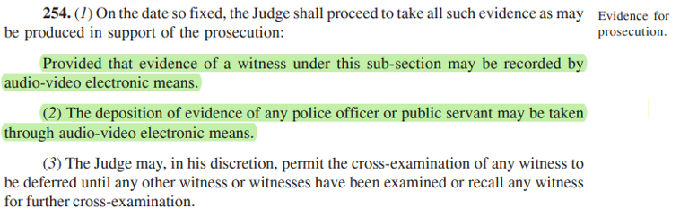 S.254, BNSS: Recording/deposition of evidence by electronic means