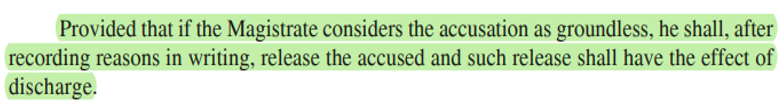 To recall, in Warrants and Sessions cases, the court was specifically empowered to discharge the accused if no prima facie case was made out.