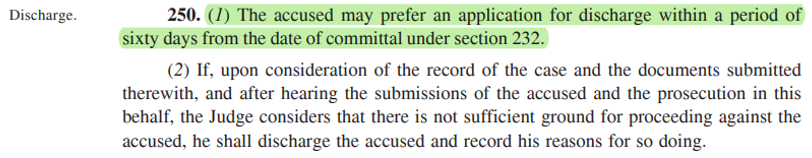 1.12. Now, a Discharge Application has to be filed within 60 days of committal of the matter: