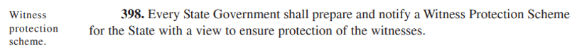 A real good step would have been to lay-down a chapter within the Criminal Procedure Code spelling out mechanics of witness protection and fixing responsibility.