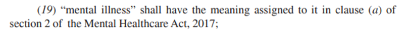 Further, as my colleague Hamna Rehan points out, the concept of “mental illness”, as defined in S.2(s) in the Mental Healthcare Act, 2017 also excludes from its ambit “mental retardation”. This may need some deliberation.