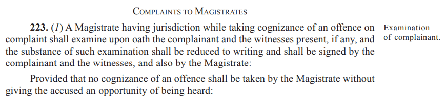 Section 223 of the BNSS (which replaces the earlier S.200 CrPC), now in force in all its glory, has added an interesting (and potentially problematic!) proviso. It reads: