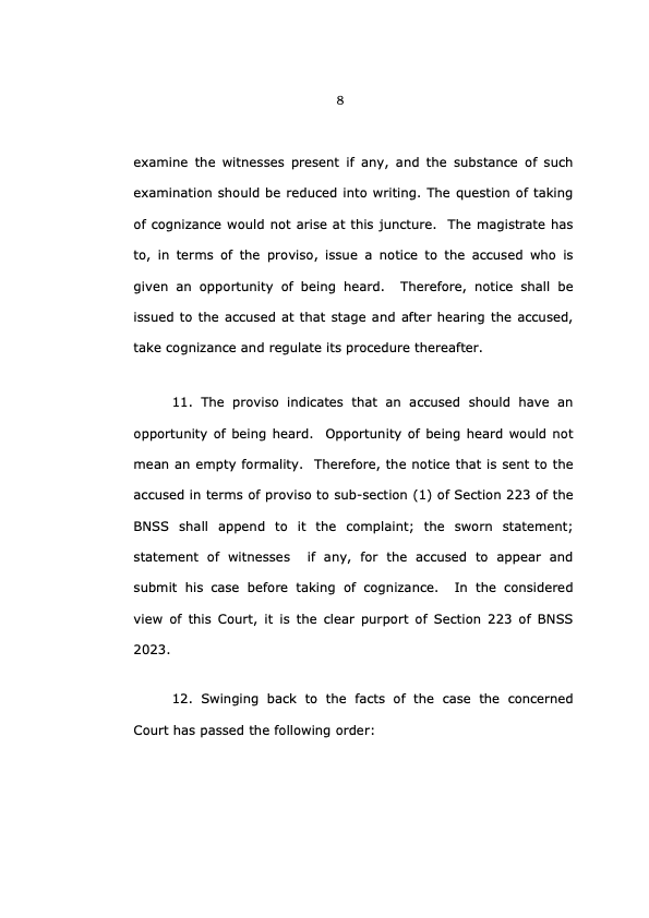 It is clear that – now – the provision envisages issuance of a notice before taking of cognisance. This effectively means that for complaints under BNSS, the Judicial Magistrate must give the accused – or more appropriately the proposed accused – an opportunity of being heard prior to cognisance i.e prior to application of judicial mind.